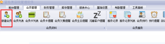 在会员管理软件中,对会员资料进行填写。点击【会员管理】【新建会员】,系统显示和会员相关的很多资料。
