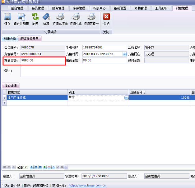 点击当前会员界面的【充值开单】,输入要充值的金额,或者有赠送的金额。