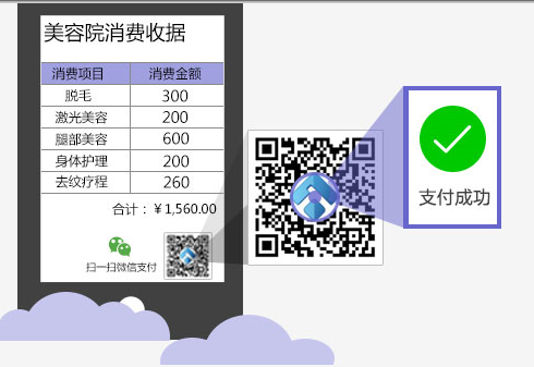 傲蓝美容院管理软件会员消费开单时就可以用微信支付,在产生消费且开单成功后,软件会自动生成二维码,可将生成的二维码进行付款操作,方便且安全。微信扫码、支付宝扫码付款时传统与潮流相结合,引领行业新标准,同时提高店铺形象。