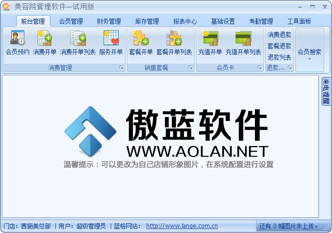 傲蓝美容院会员管理软件系统是多分店多用户连锁管理系统,让会员轻松跨店刷卡消费,让客户亲身感受不同地域的优质服务。支持磁条卡,ID卡,IC卡,可擦写可视打印卡。 支持会员发送短信,支持微信会员系统。支持来电提醒,支持会员促销。